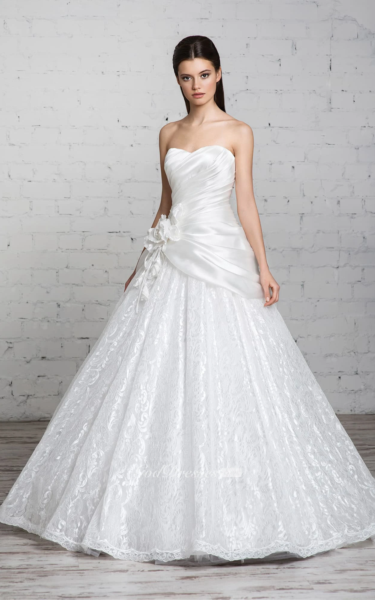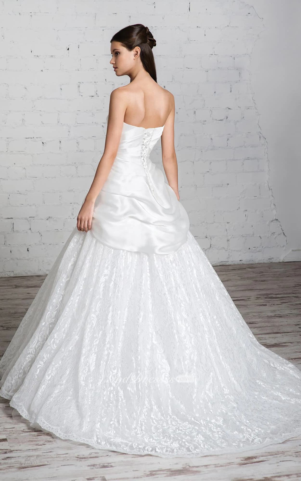 A-Line Long Sweetheart Sleeveless Lace-Up Lace Satin Dress With Flower And Side Draping
