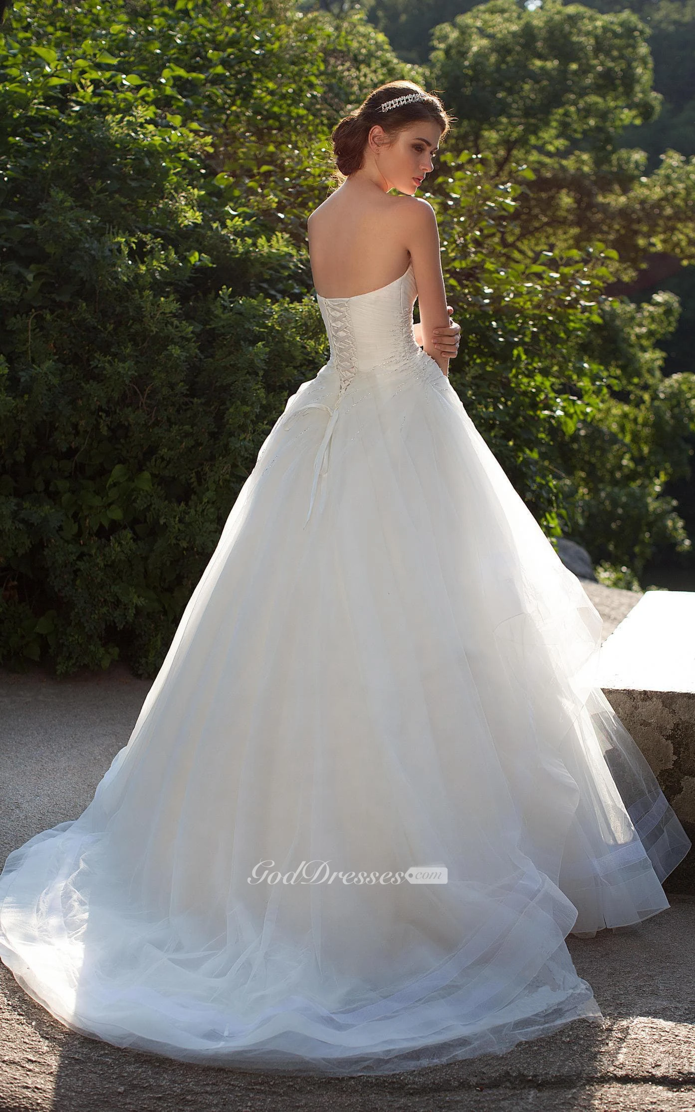 A-Line Long Sweetheart Sleeveless Lace-Up Tulle Dress With Side Draping And Beading