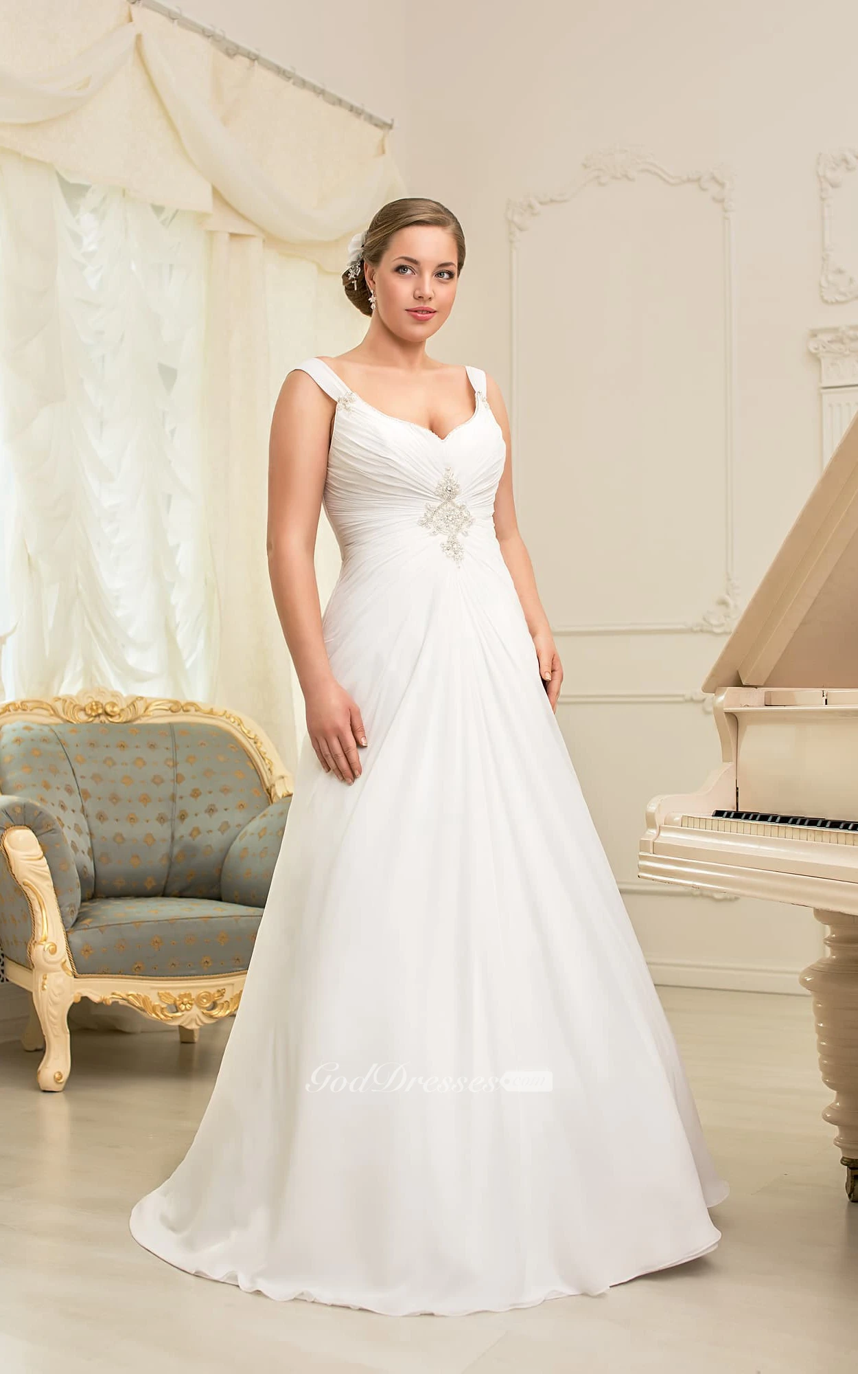A-Line Long V-Neck Sleeveless Lace-Up Chiffon Dress With Beading And Ruching