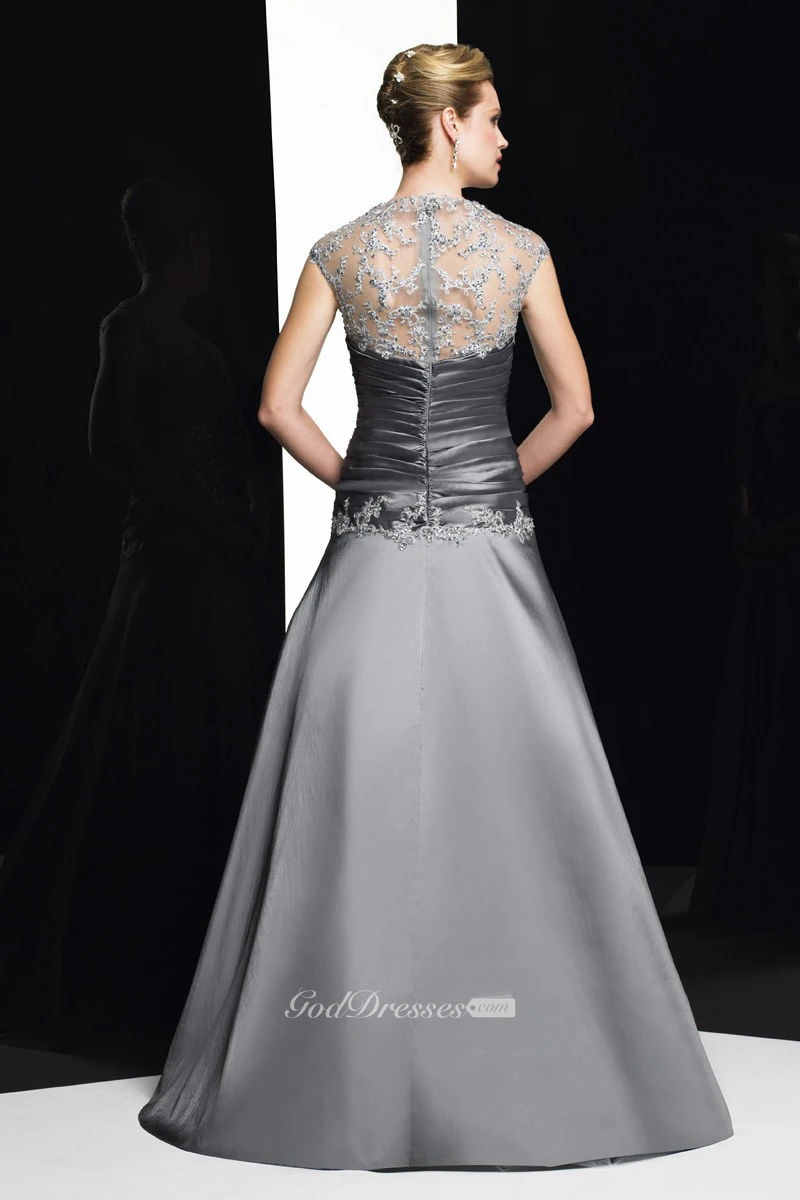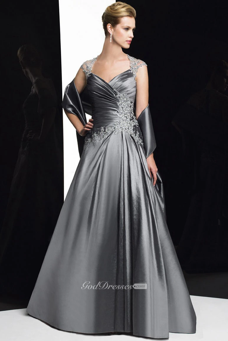 A-Line Maxi Appliqued Sleeveless Queen Anne Satin Formal Dress