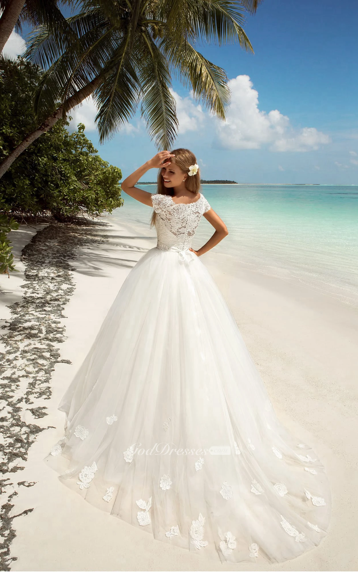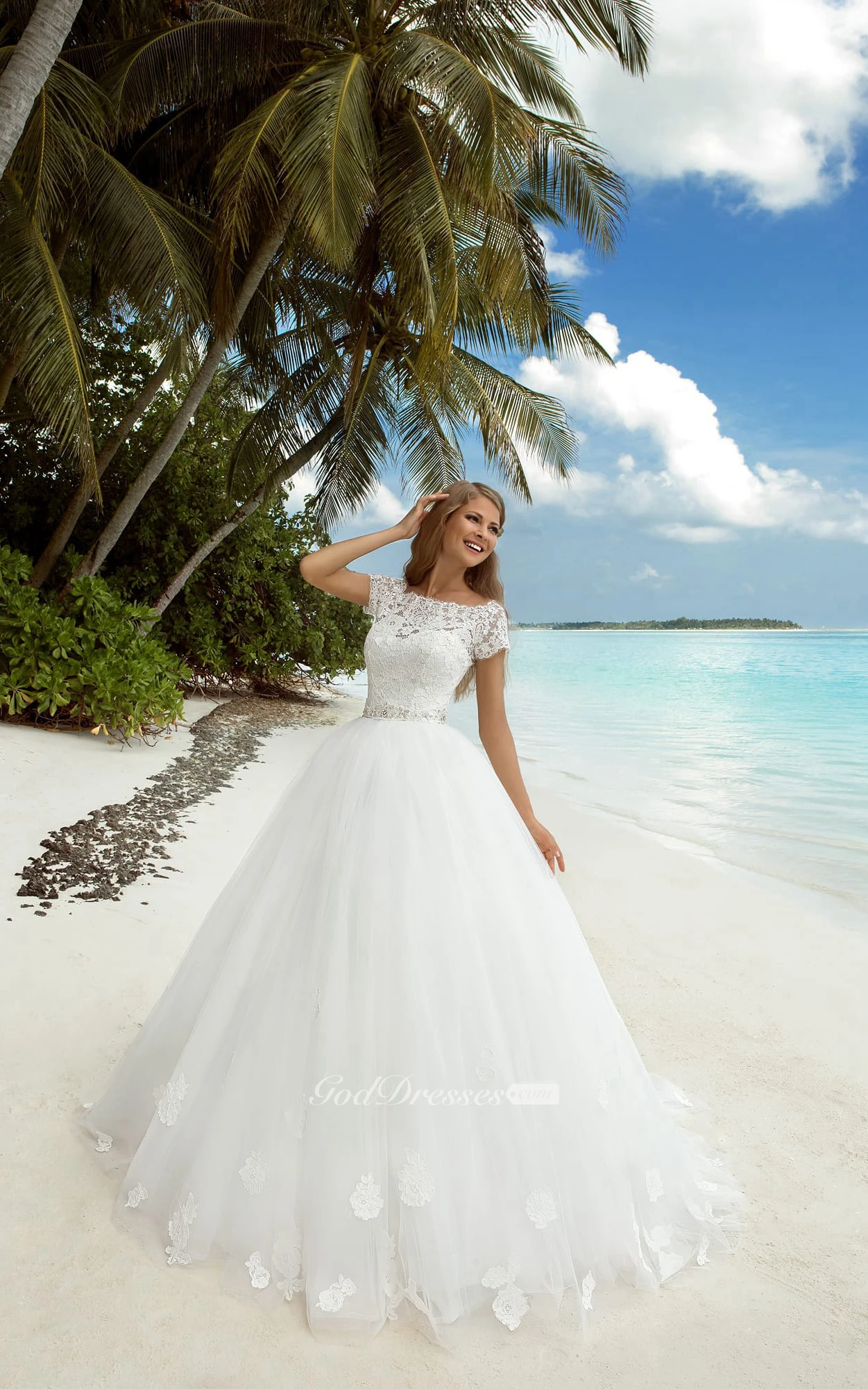 A-Line Maxi Bateau-Neck Long-Sleeve Tulle Dress With Beaded