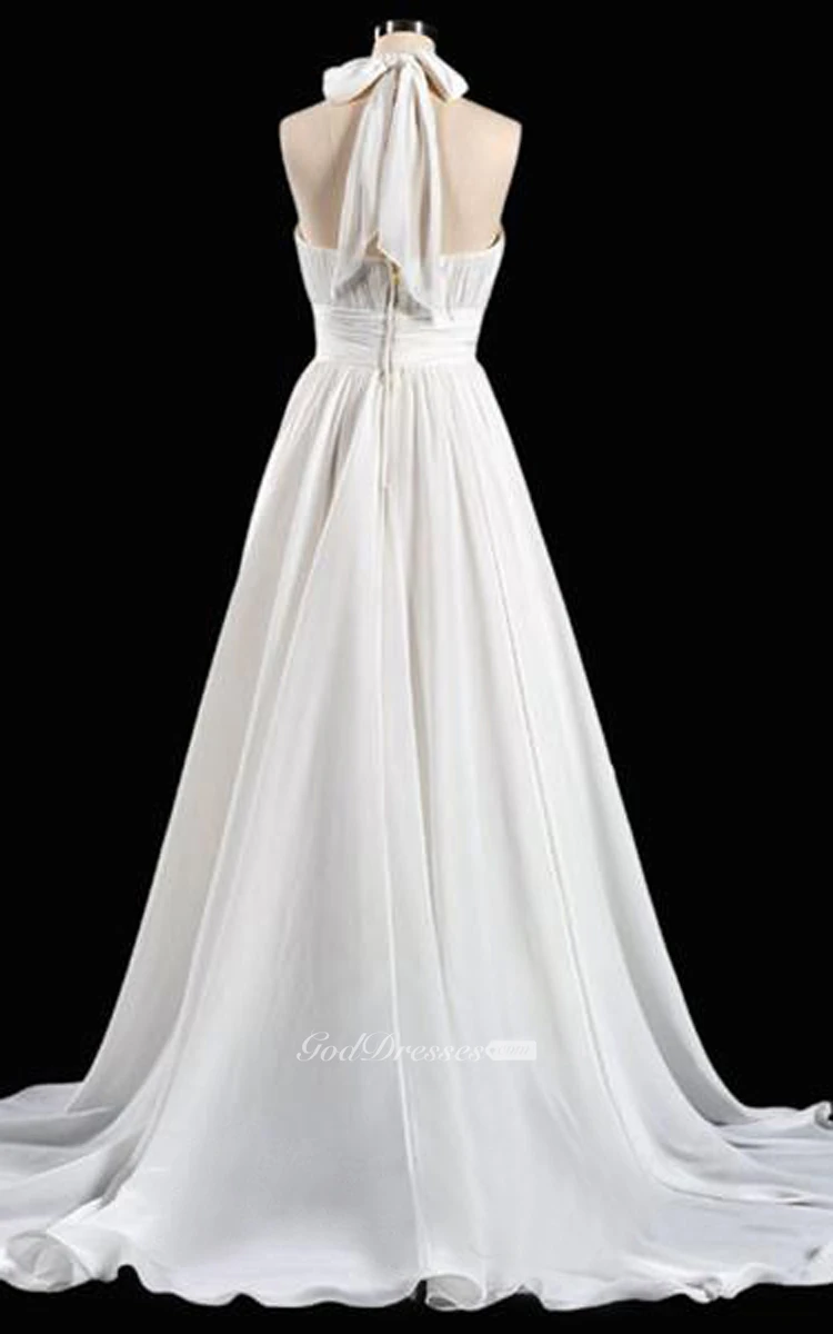 A-Line Maxi Halter Sleeveless Bell Ruffles Backless Chiffon Lace Dress