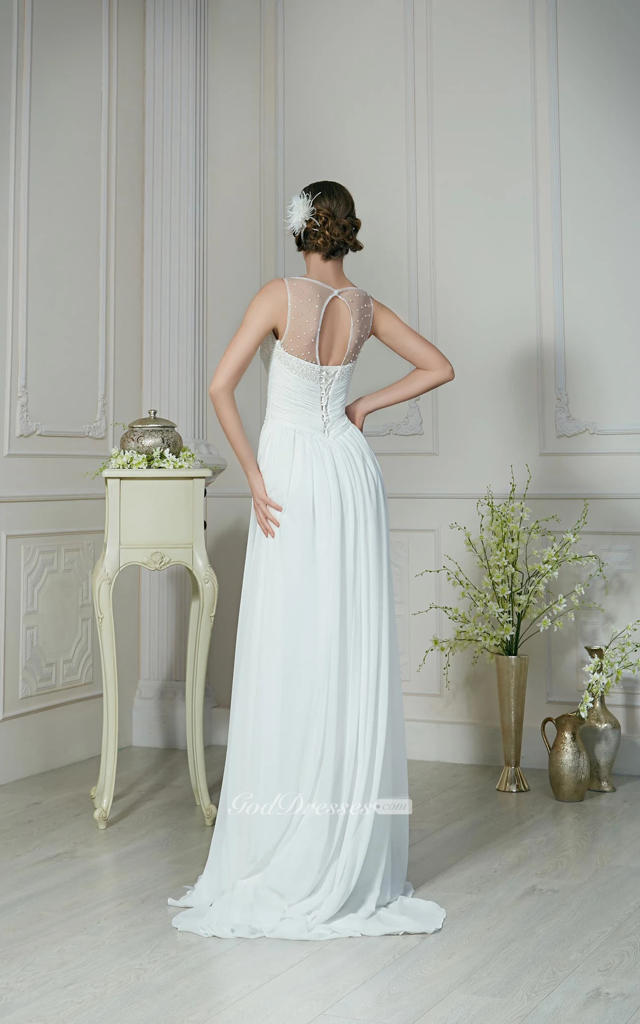 A-Line Maxi Scoop-Neck Sleeveless Lace-Up Chiffon Dress With Pleatings And Beading