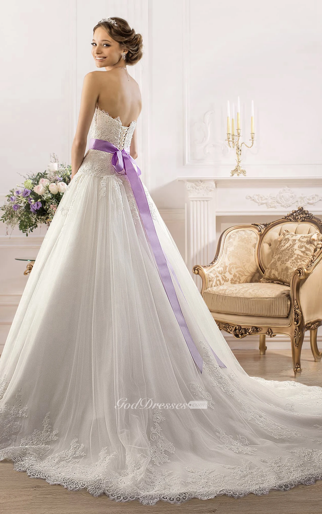 A-Line Maxi Strapless Sleeveless Backless Lace Tulle Dress