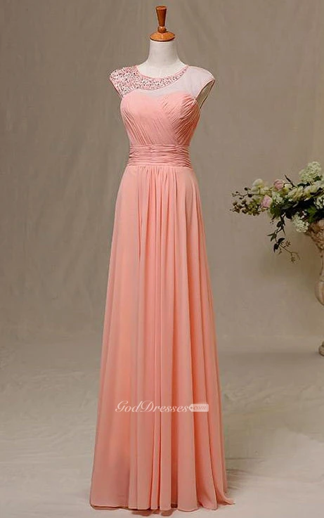 A-line Maxi Sweetheart Beading Keyhole Chiffon Dress