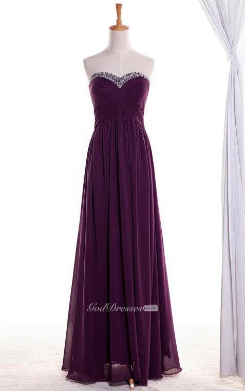 A-line Maxi Sweetheart Bell Beading Chiffon Dress
