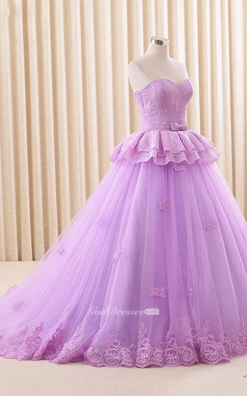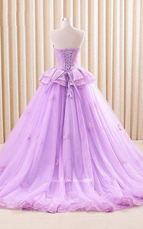 A-Line Maxi Sweetheart Sweep Train Zipper Corset Back Tulle Lace Satin Dress