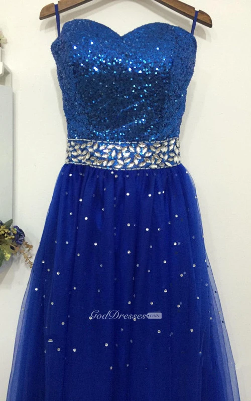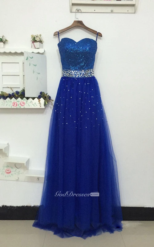 A-line Maxi Sweetheart Tulle Dress With Beading And Sequins