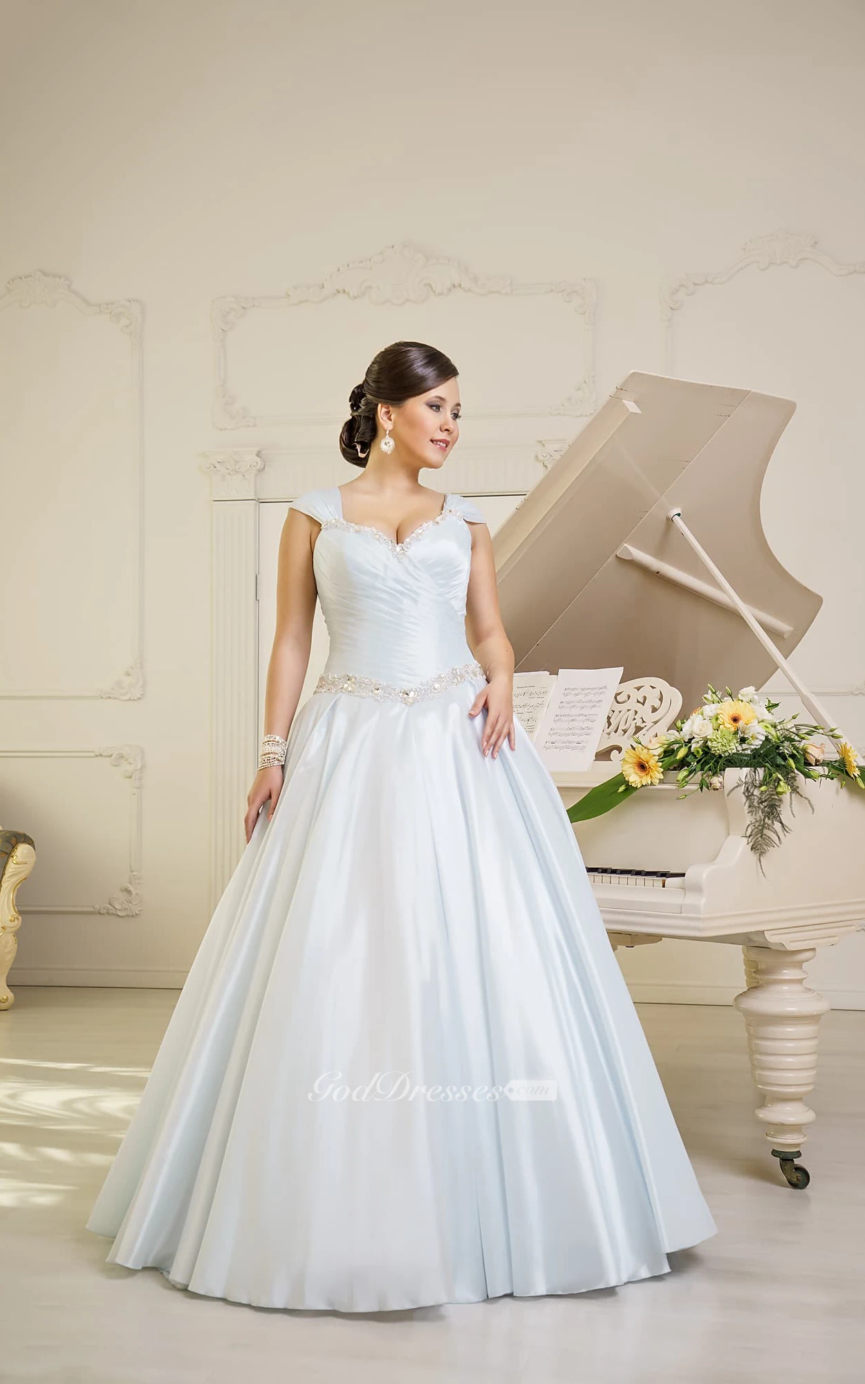 A-Line Maxi V-Neck Cap-Sleeve Lace-Up Satin Dress With Ruching And Beading