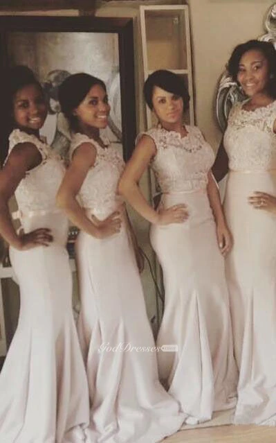 A-line Mermaid Sleeveless Pleats Sweep Train Backless Chiffon Lace Dress