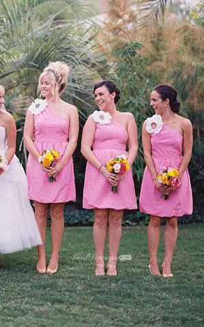 A-line Mini One-shoulder Bell Flower Ruffles Pick Up Flower Zipper Chiffon Dress