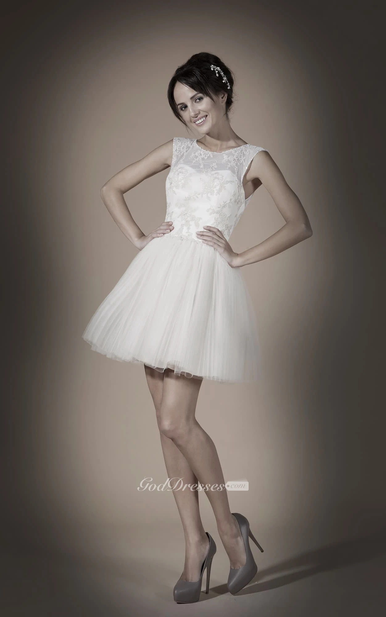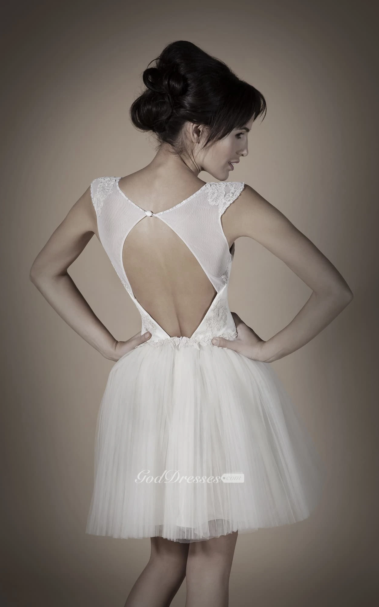 A-Line Mini Scoop Sleeveless Keyhole Tulle Dress With Appliques