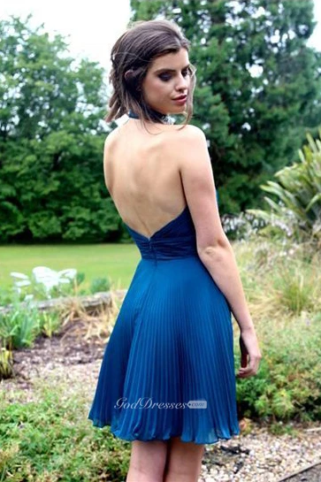 A-Line Mini Sleeveless Beaded High Neck Prom Dress With Backless Style And Pleats