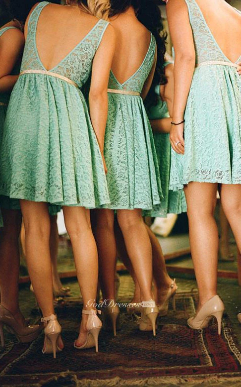 A-line Mini Sleeveless Lace Dress with Deep V-back