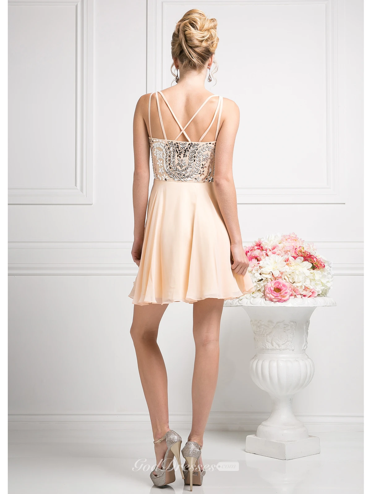 A-Line Mini Spaghetti Sleeveless Chiffon Dress With Sequins