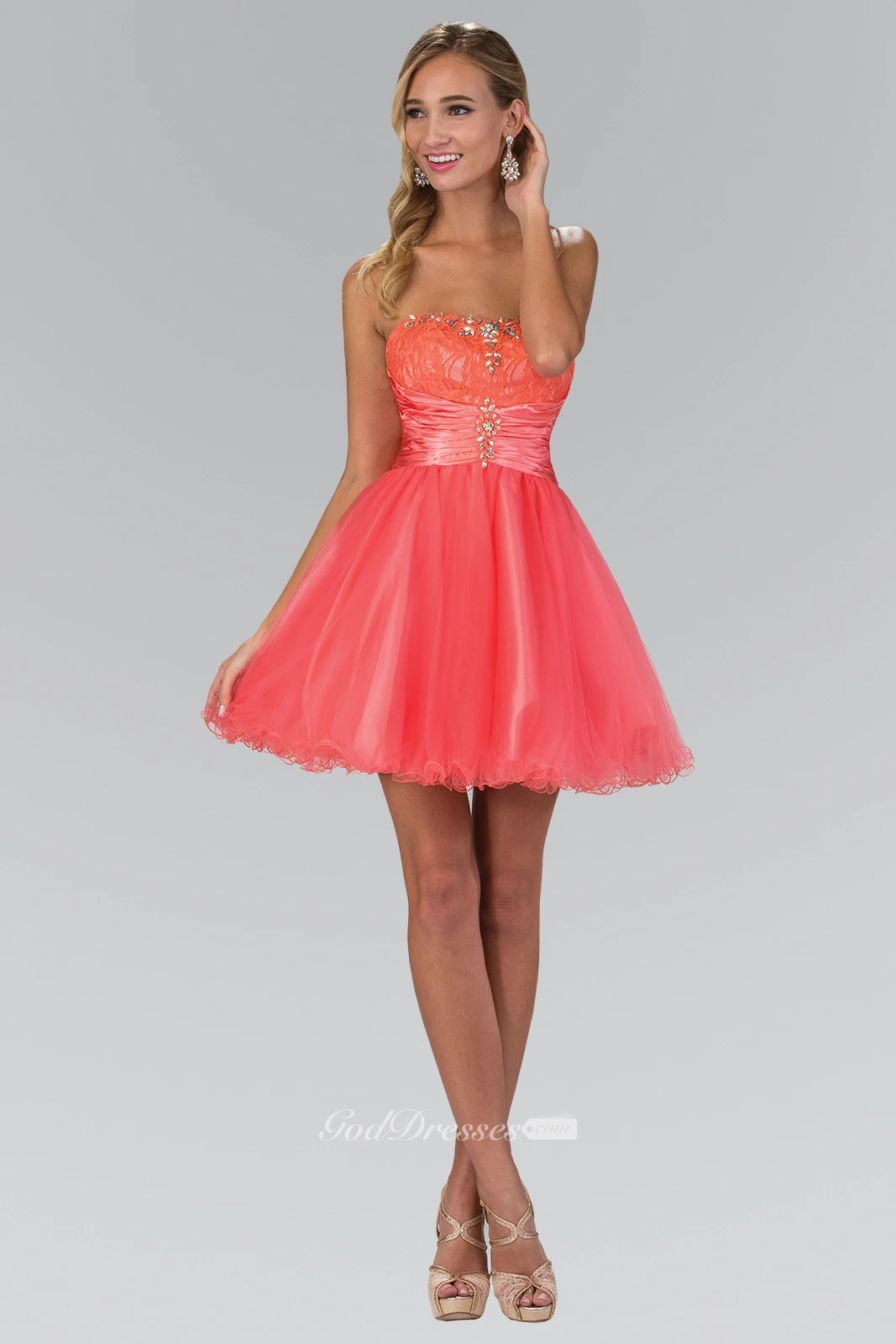 A-Line Mini Strapless Sleeveless Tulle Corset Back Dress With Beading And Lace