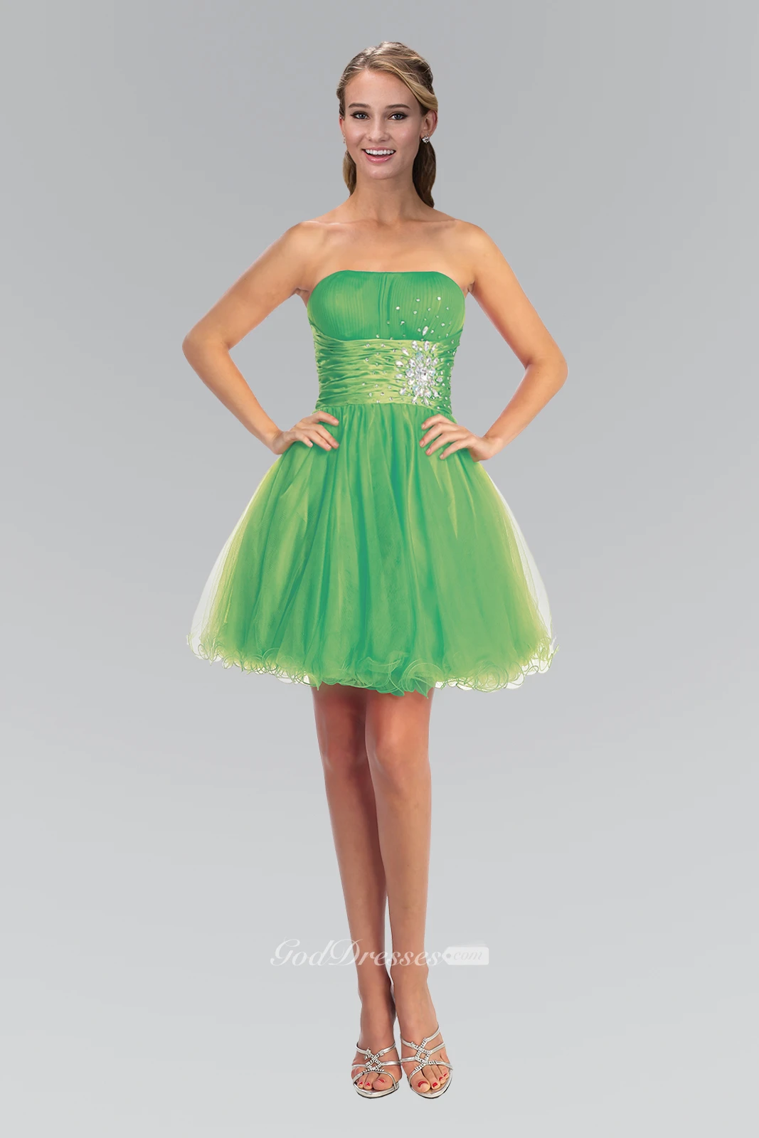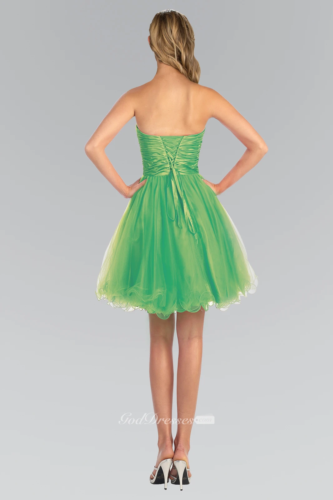 A-Line Mini Strapless Sleeveless Tulle Corset Back Dress With Ruffles And Beading