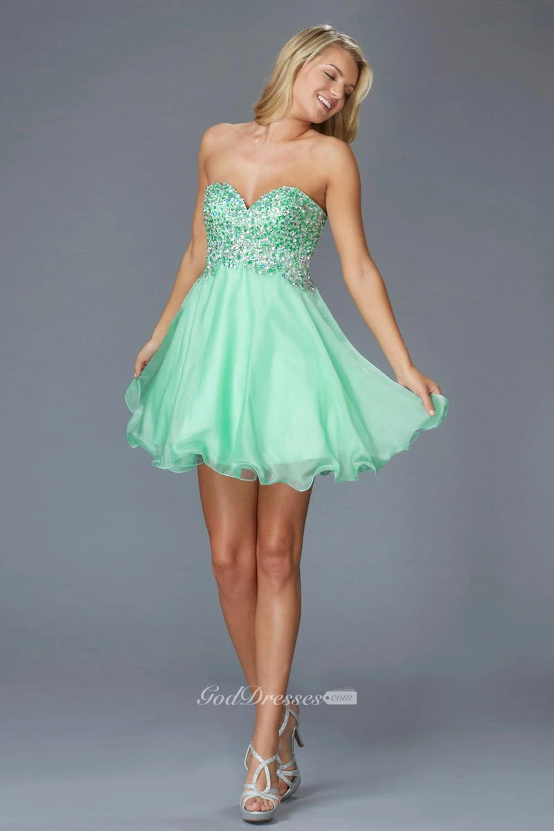 A-Line Mini Sweetheart Sleeveless Backless Dress With Beading