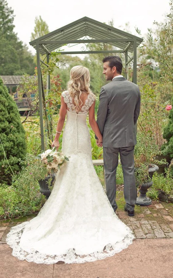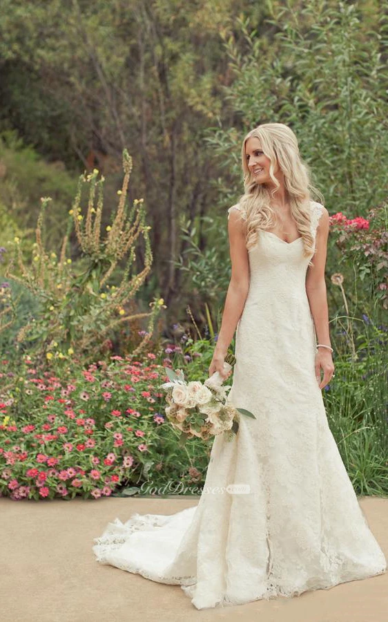 The cap sleeve lace wedding dress is perfect! the color is amazing, the fabric is wonderful, and it fit me perfectly. My sister wants one now too! definitely plan to buy from this store again.