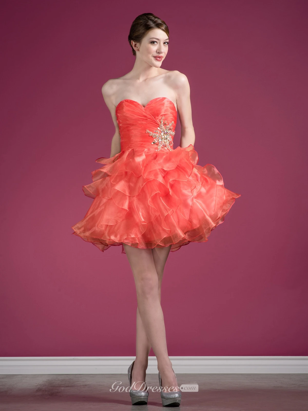 A-Line Mini Sweetheart Sleeveless Organza Dress With Ruffles And Criss Cross