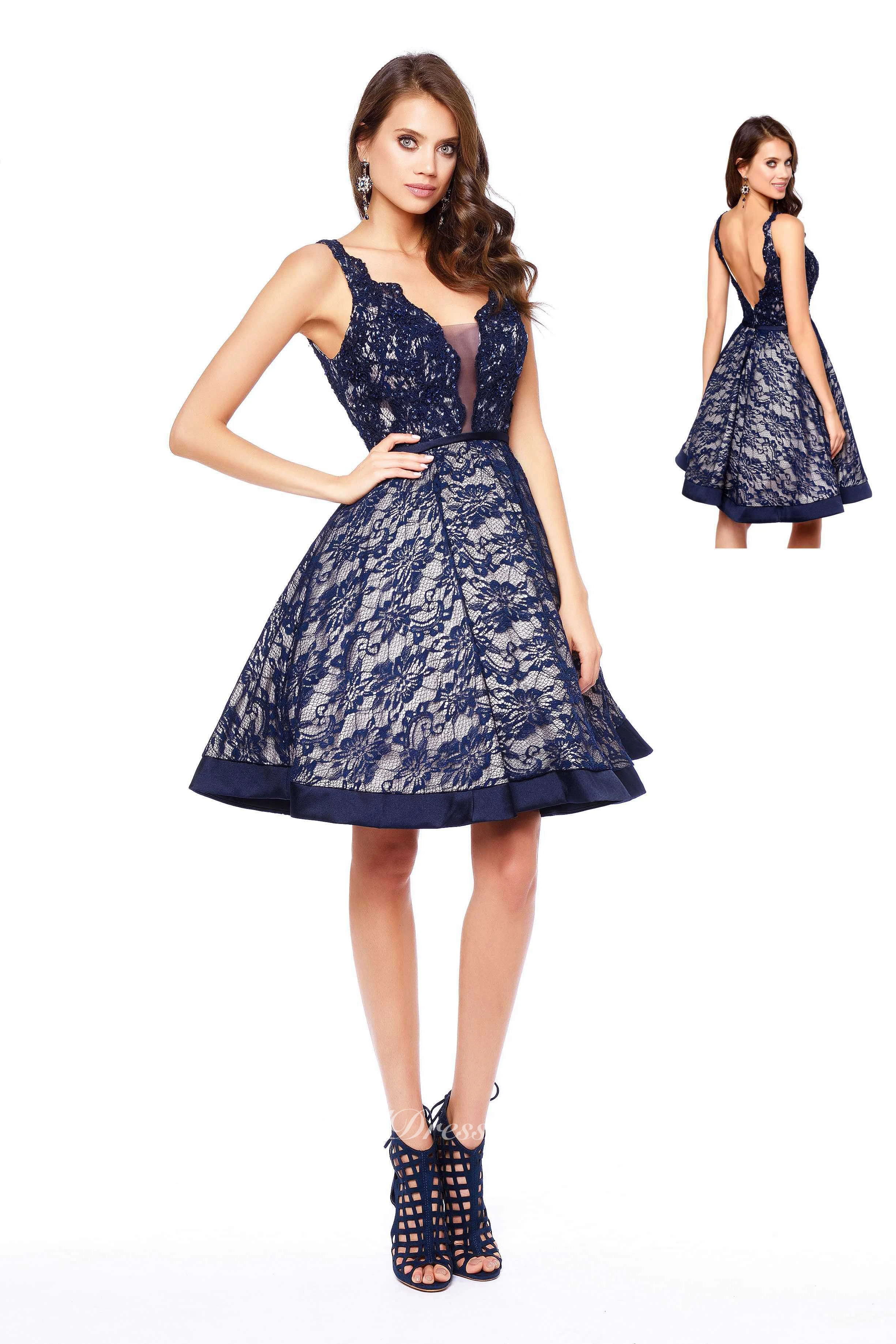 A-Line Mini V-Neck Sleeveless Lace Deep-V Back Dress