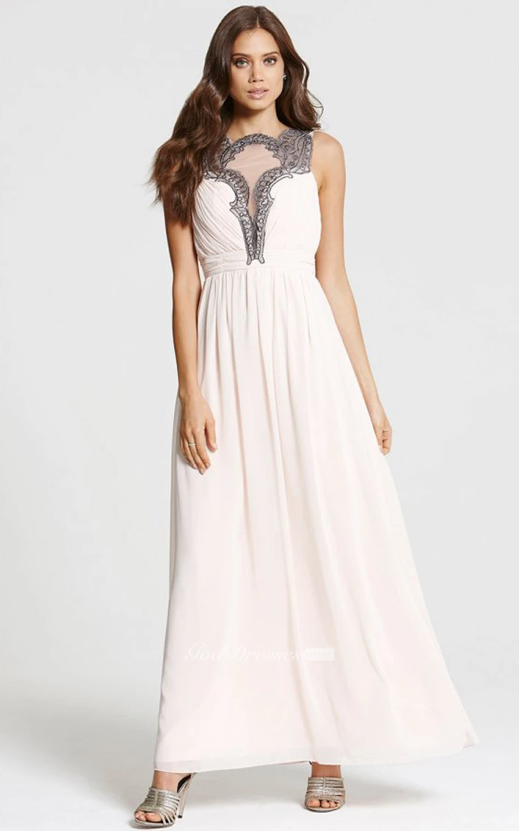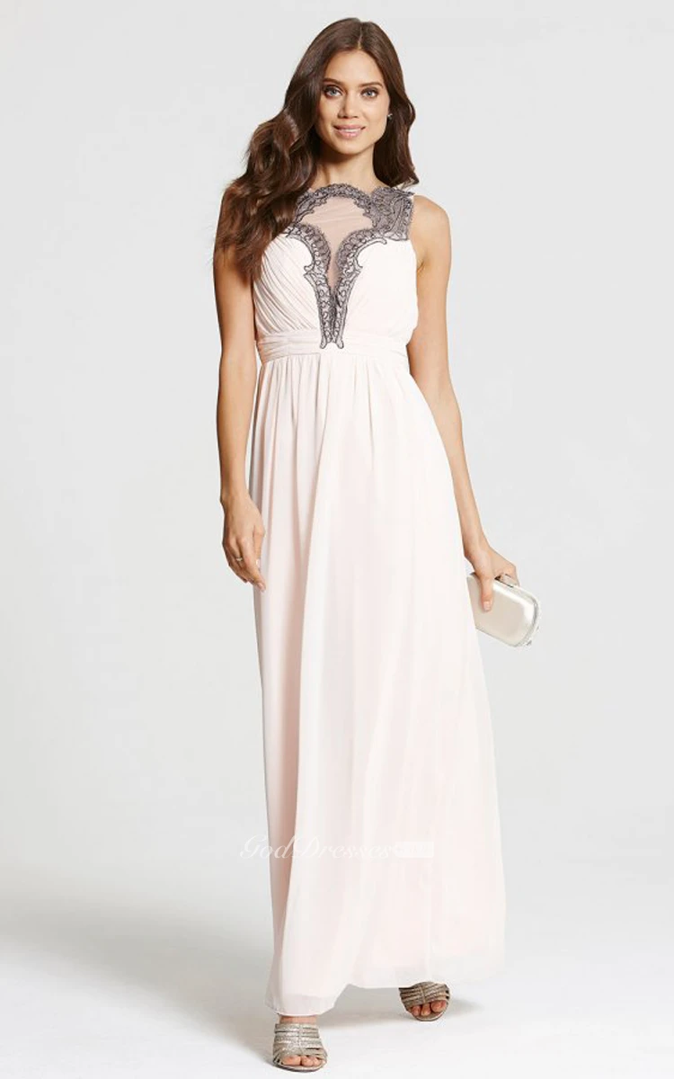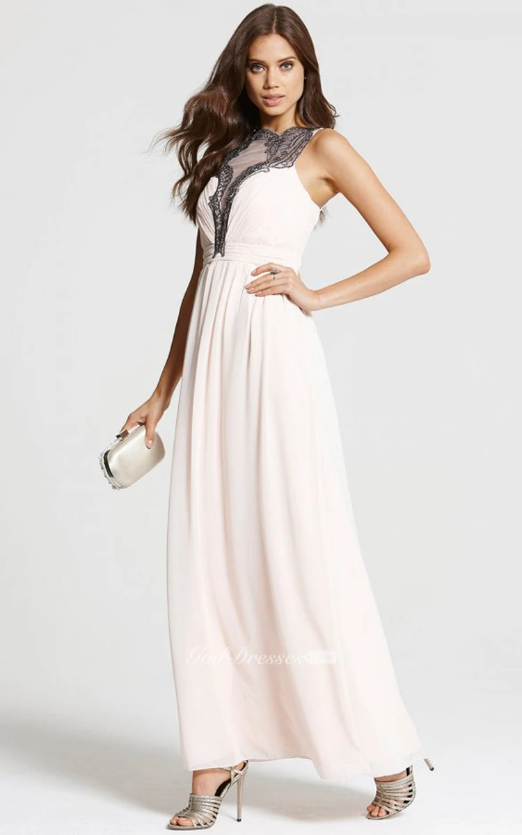 A-Line Modest Long Chiffon Dress With Elastic Back