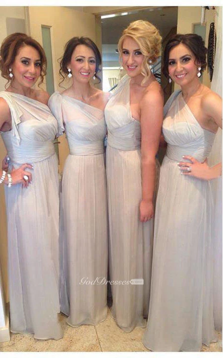 A-line One-shoulder Draping Pleats Zipper Chiffon Dress