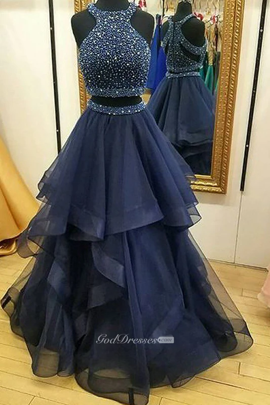 A-Line Organza High Neck Sleeveless Zipper Dress
