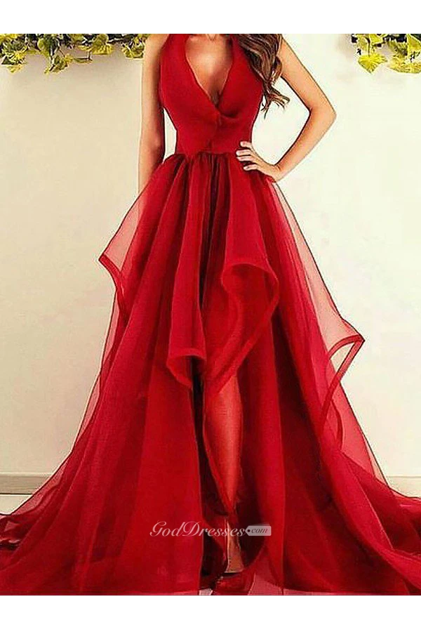 A-Line Organza V-neck Sleeveless Zipper Dress