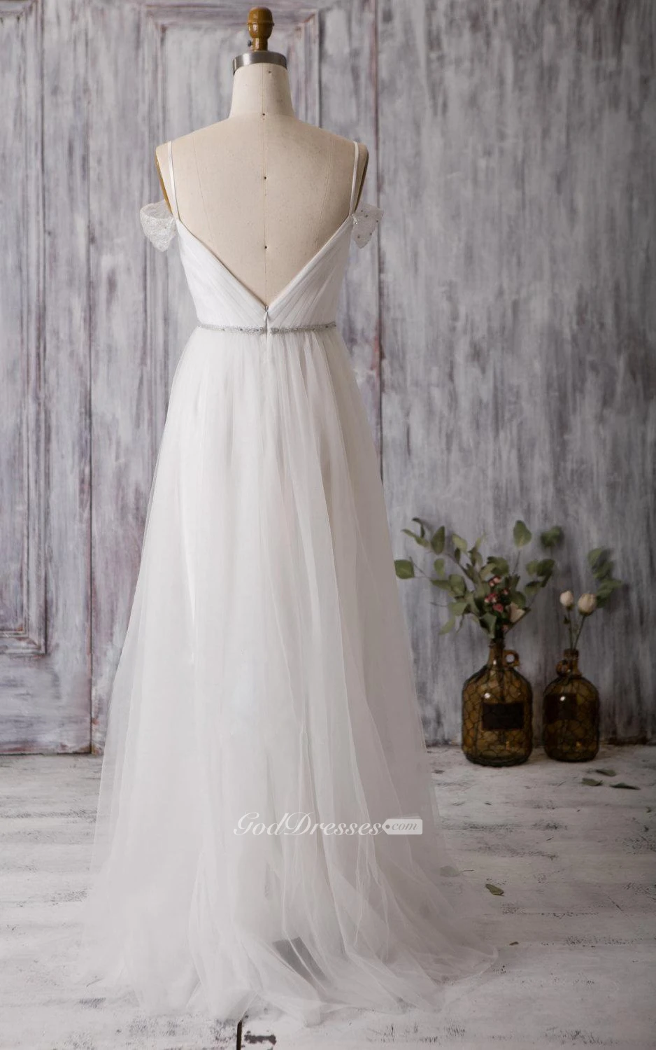 A-Line Pleated Tulle Dress With Crisscross Bodice and Spaghetti Straps