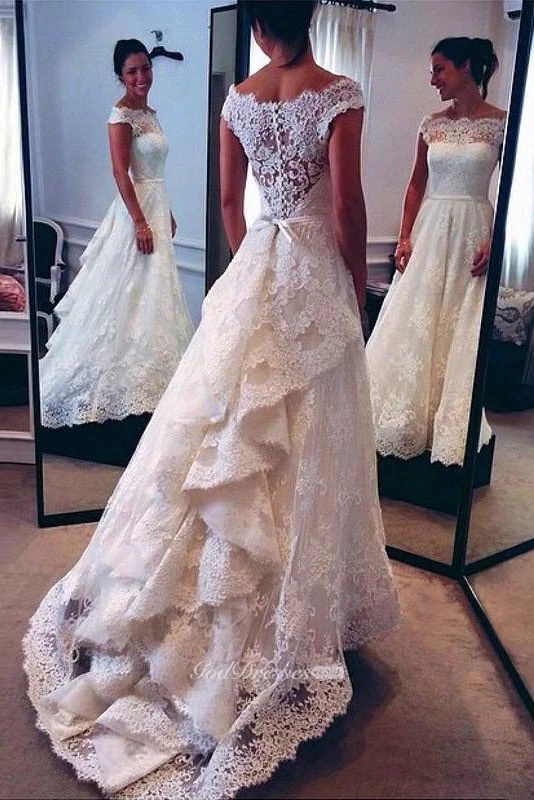 A-line Princess Scoop Lace Court Train Wedding Dresses