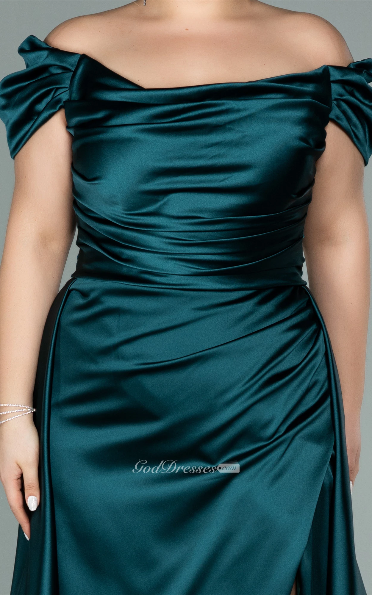 A Line Romantic Plus Size Satin Prom Dress with Split Front