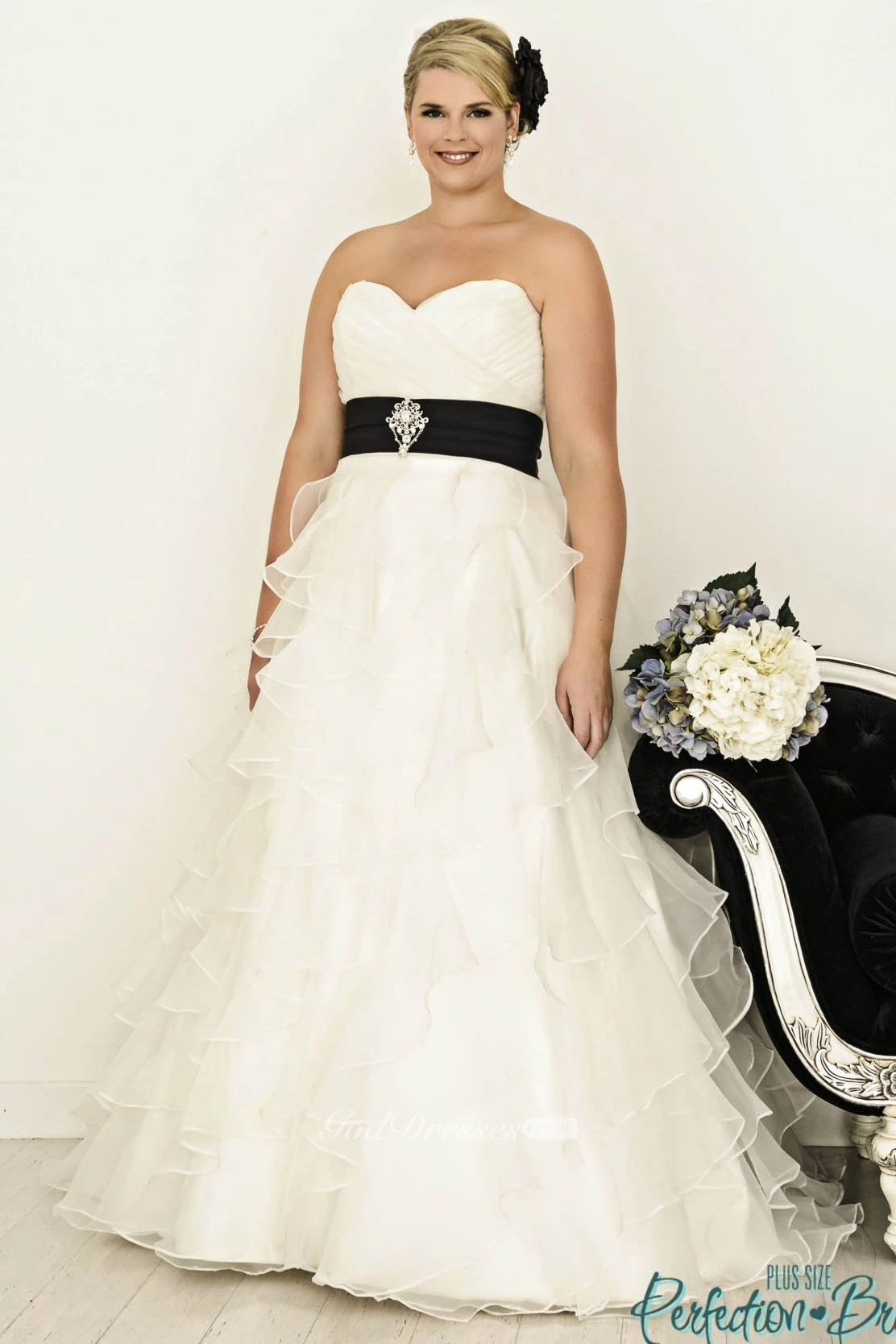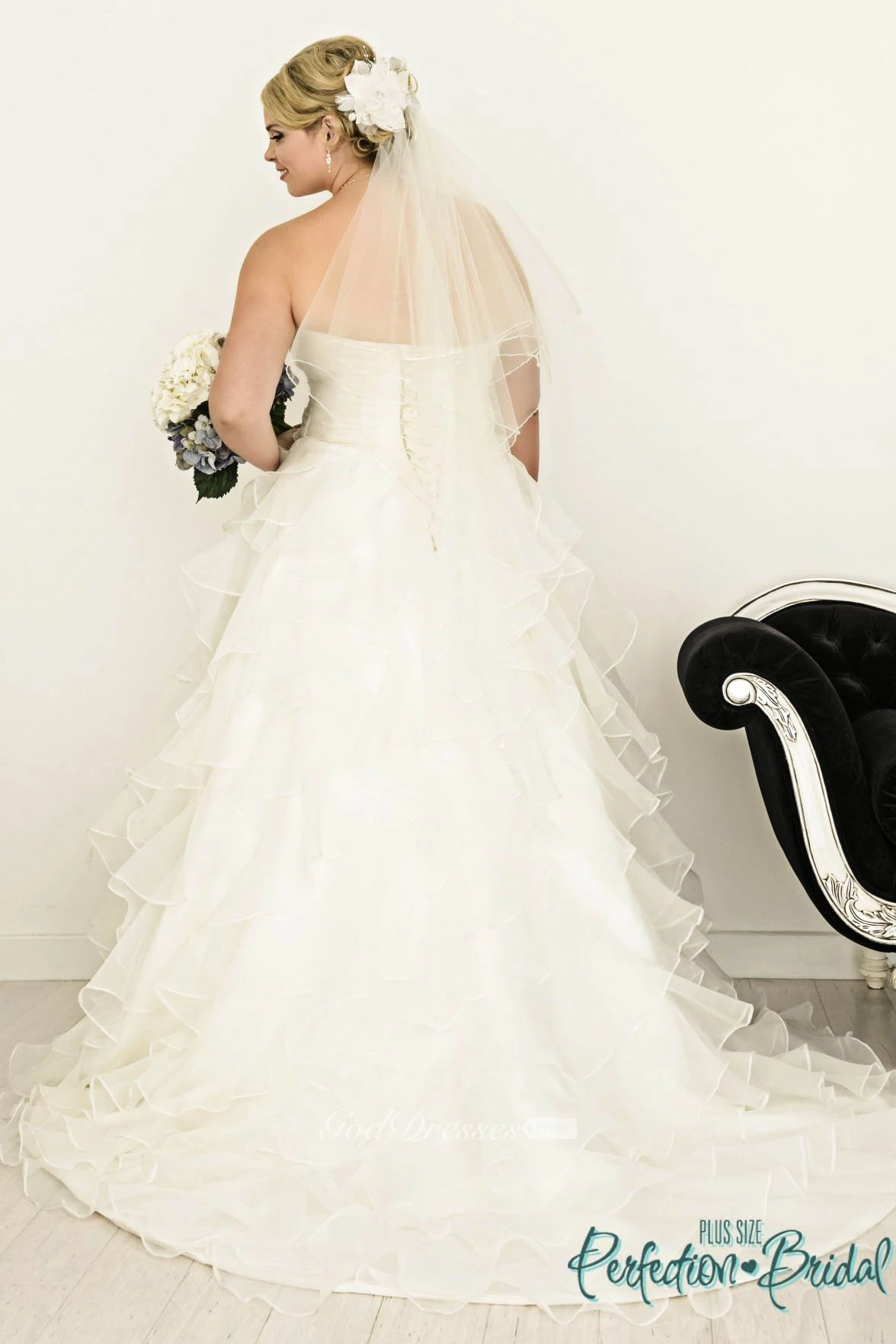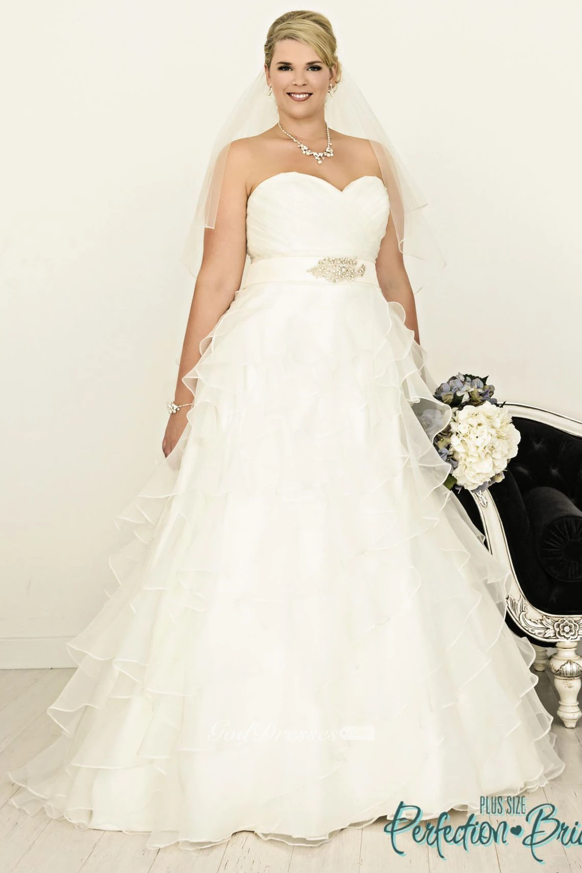A-Line Ruffled Sweetheart Floor-Length Organza Plus Size Wedding Dress With Criss Cross And Tiers