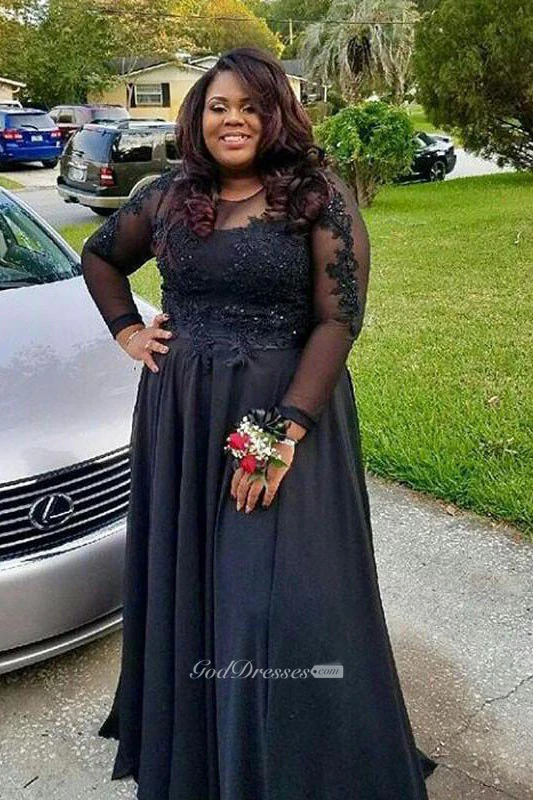 A-Line Satin Lace Jewel Long Sleeve Zipper Dress