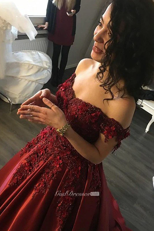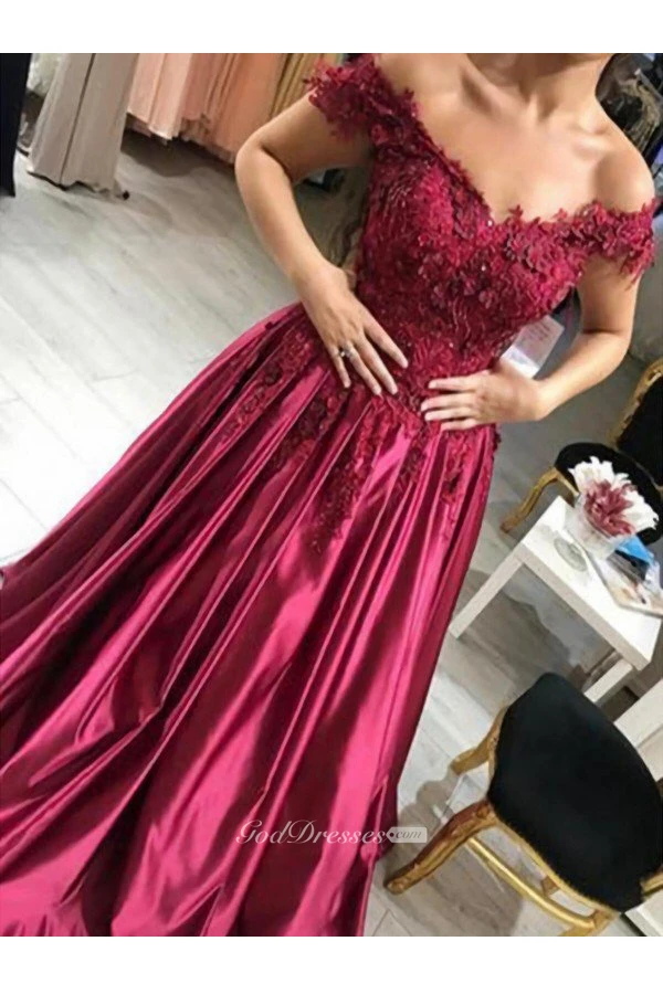 A-Line Satin Lace Off-the-shoulder Short Sleeve Zipper Dress