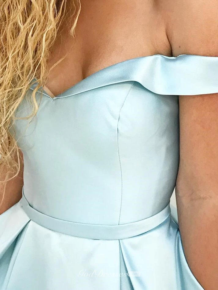 A-Line Satin Off-the-shoulder Short Sleeve Zipper Dress