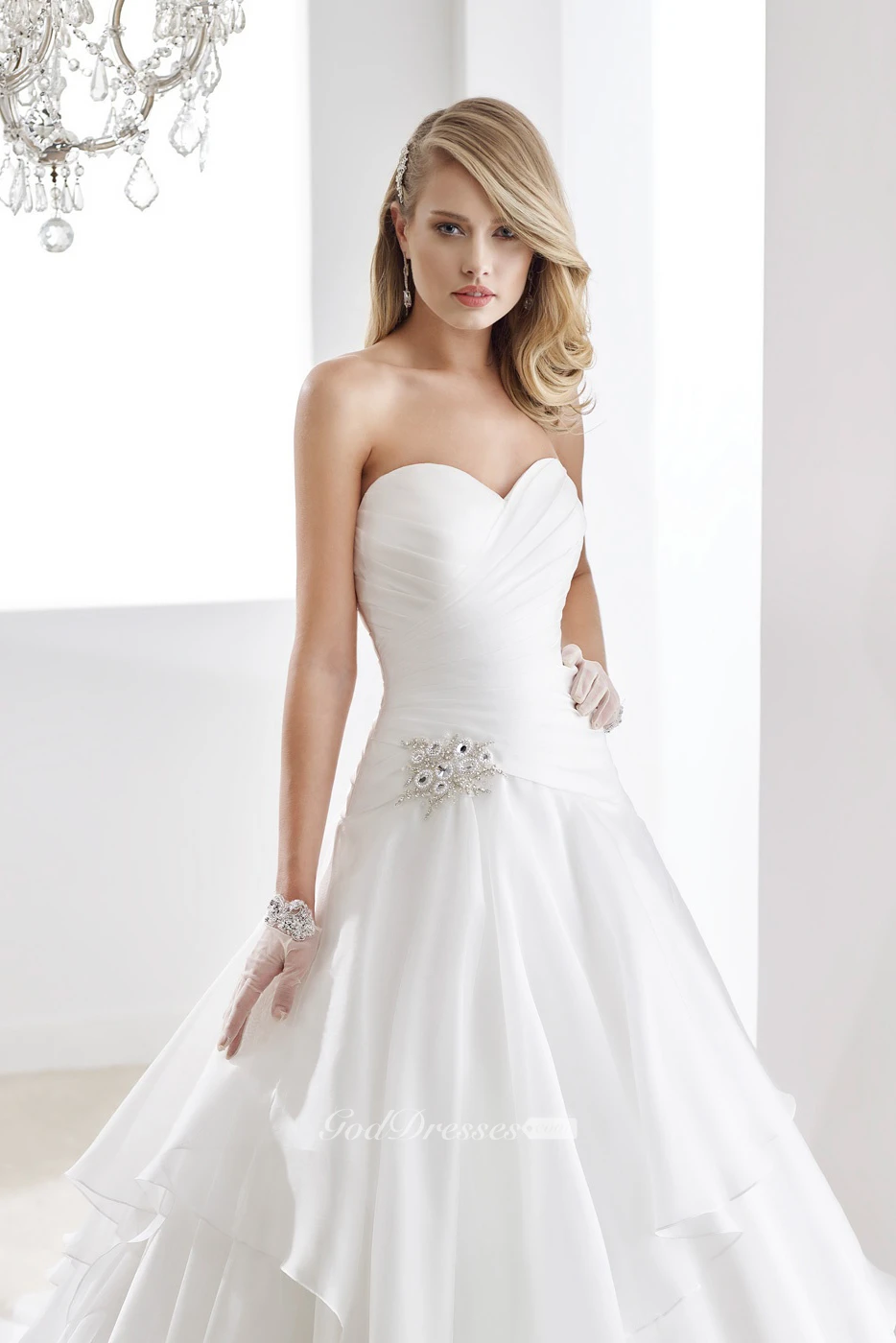 A-Line Chiffon Wedding Dress With Illusive Neckline And Beading Waist