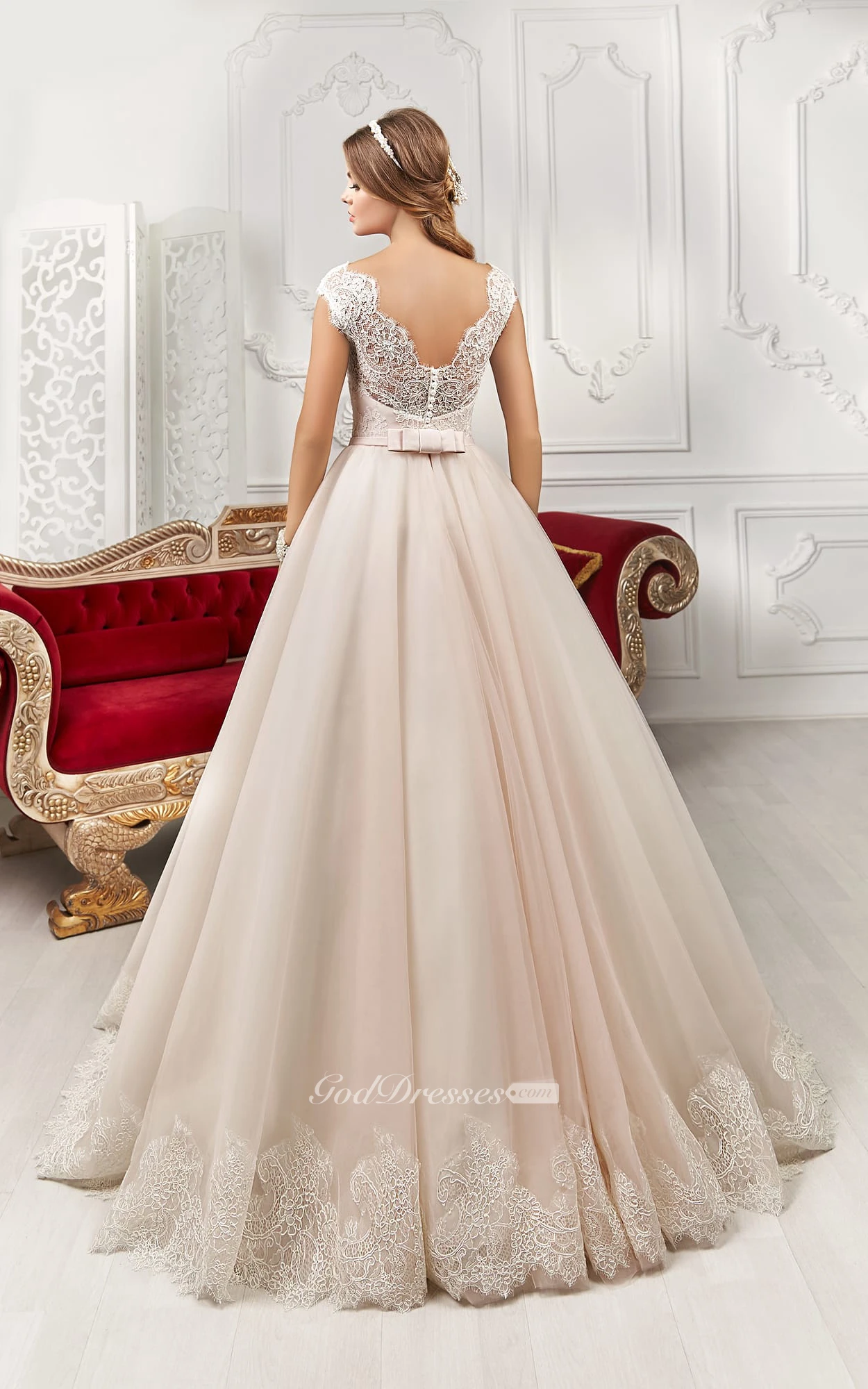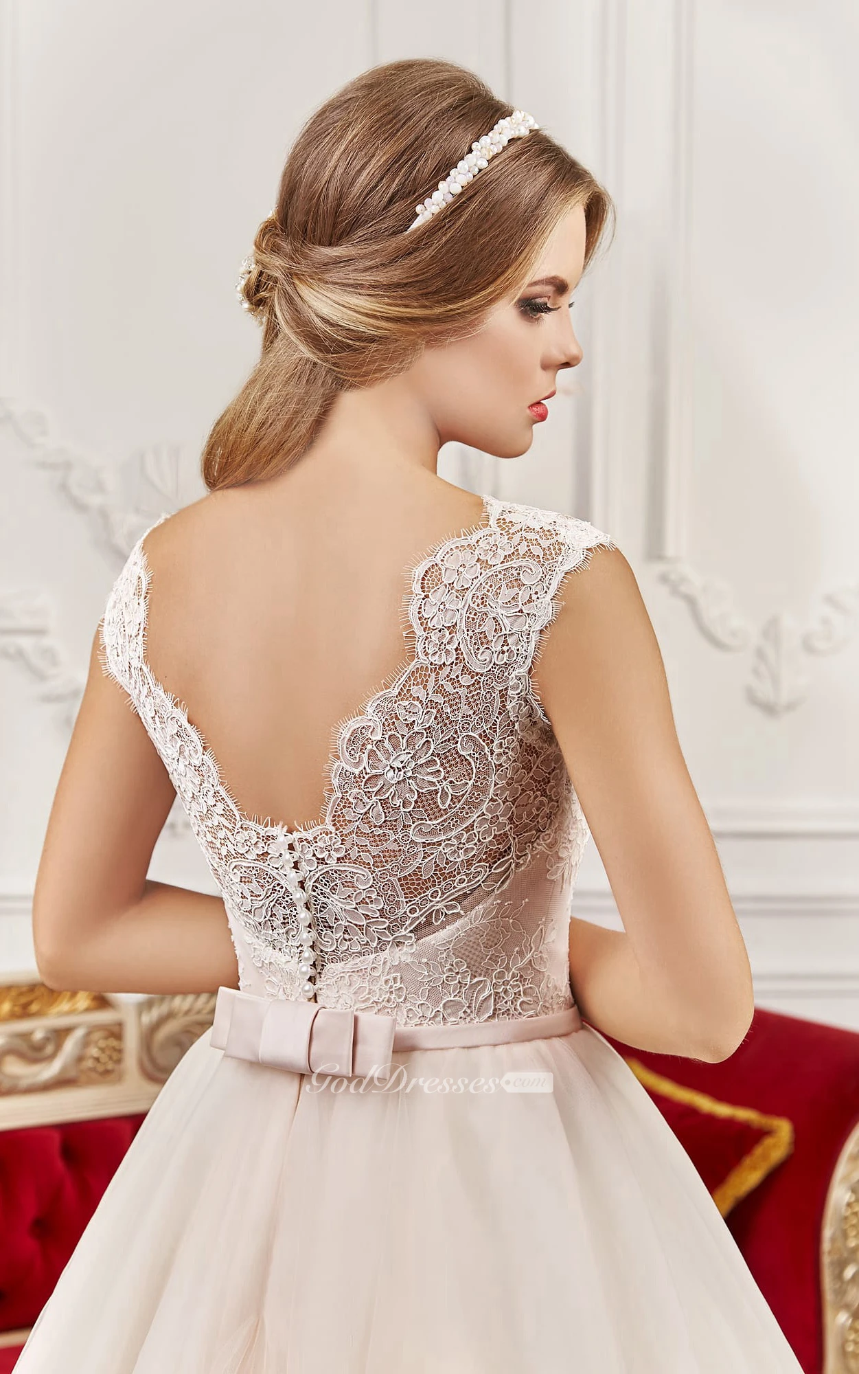A-line Scalloped Neckline Sleeveless V Back Dress With Bow