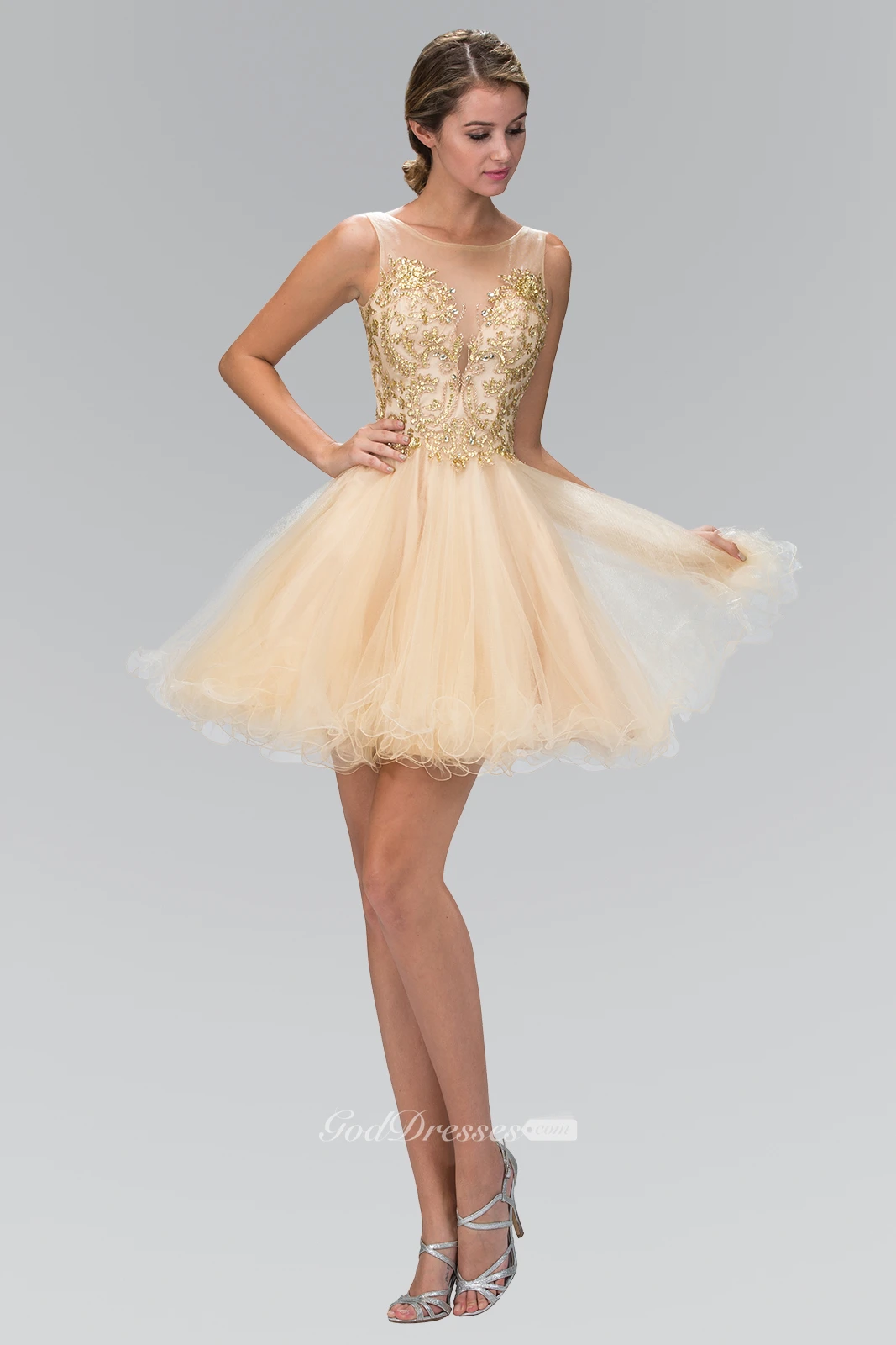 A-Line Short Bateau Sleeveless Tulle Dress With Beading And Ruffles