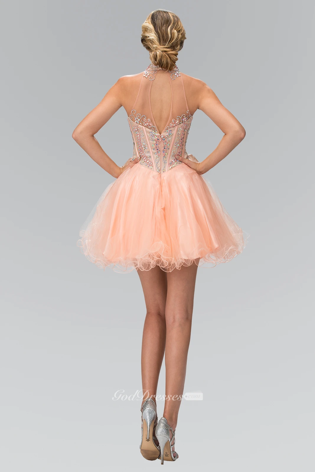 A-Line Short High Neck Sleeveless Tulle Illusion Dress With Ruffles And Beading