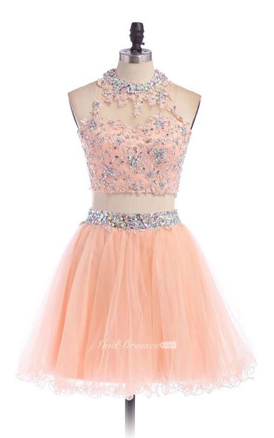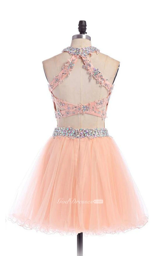 A-line Short High Neck Tulle Dress with Beadings