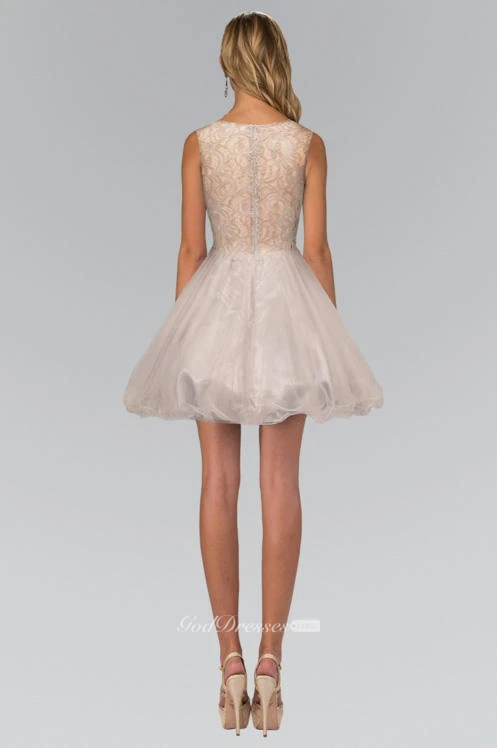 A-Line Short Jewel-Neck Sleeveless Lace Illusion Dress With Appliques