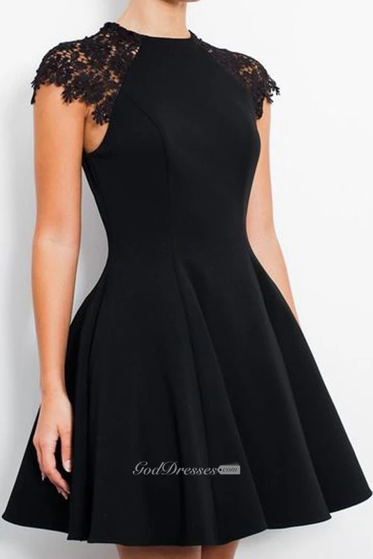 A-line Short Sleeve Satin High Neck Zipper Short Mini Homecoming Dress