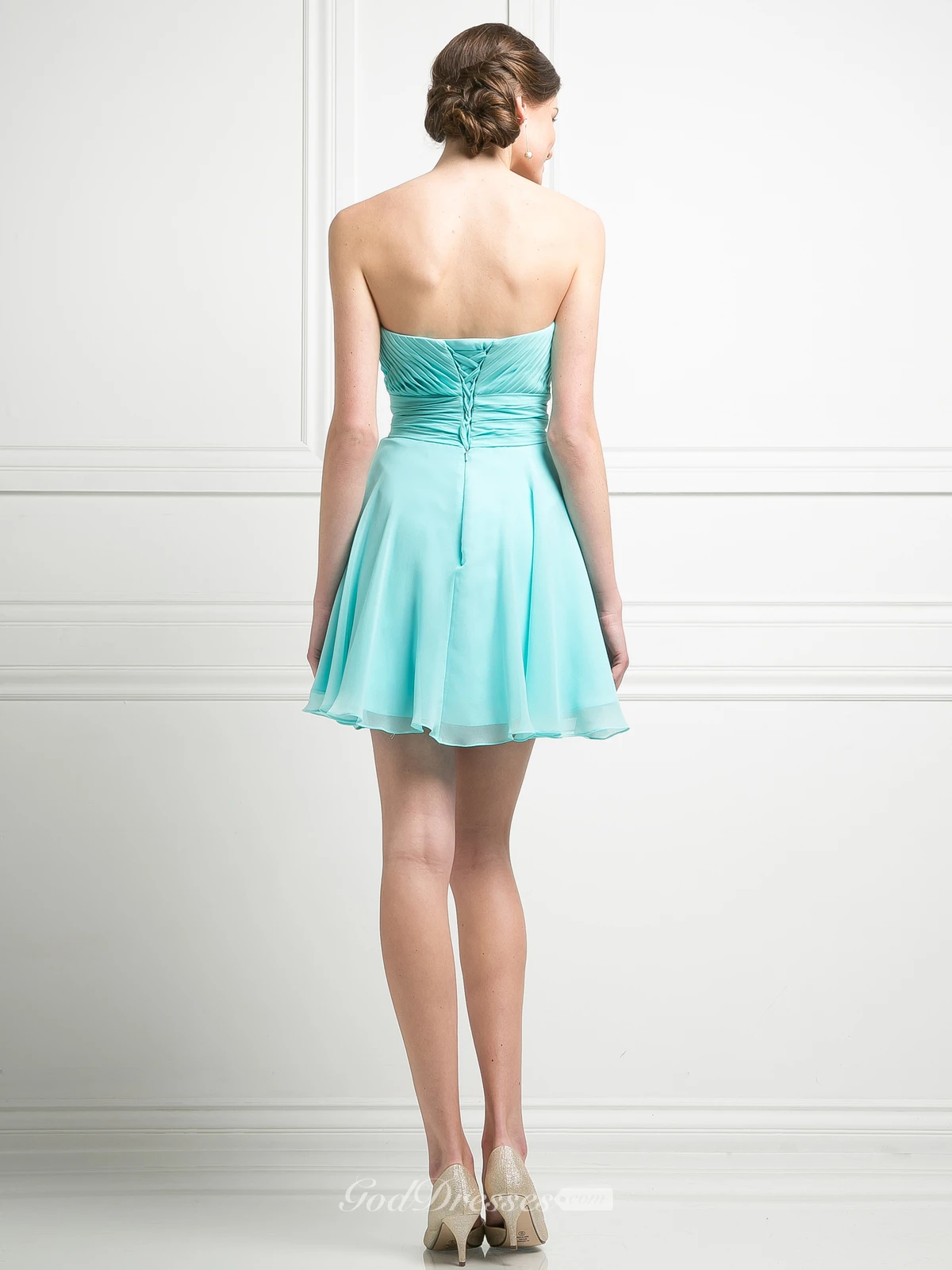 A-Line Short Sweetheart Chiffon Corset Back Dress With Criss Cross And Flower