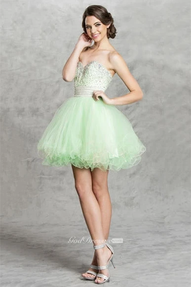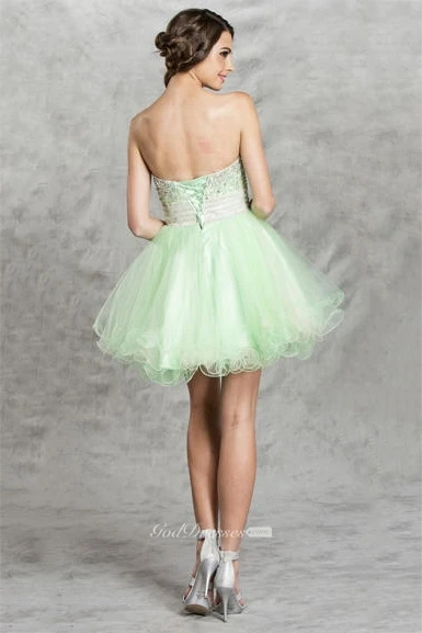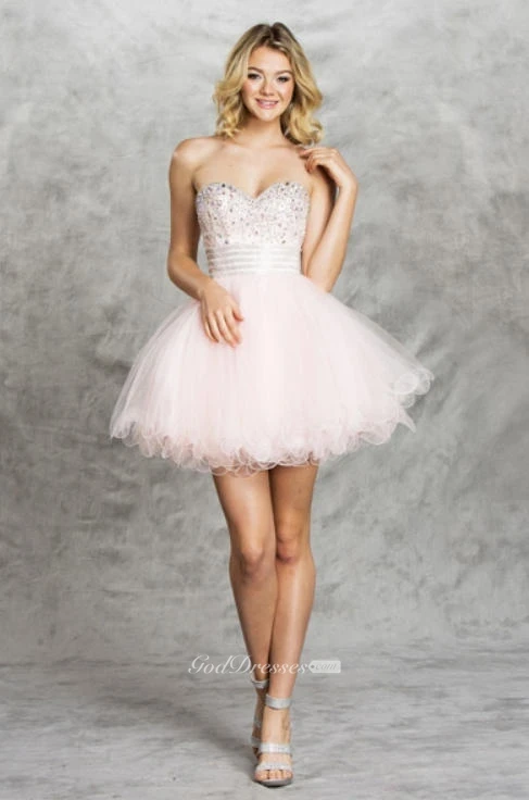 A-Line Short Sweetheart Sleeveless Backless Dress With Ruffles And Beading