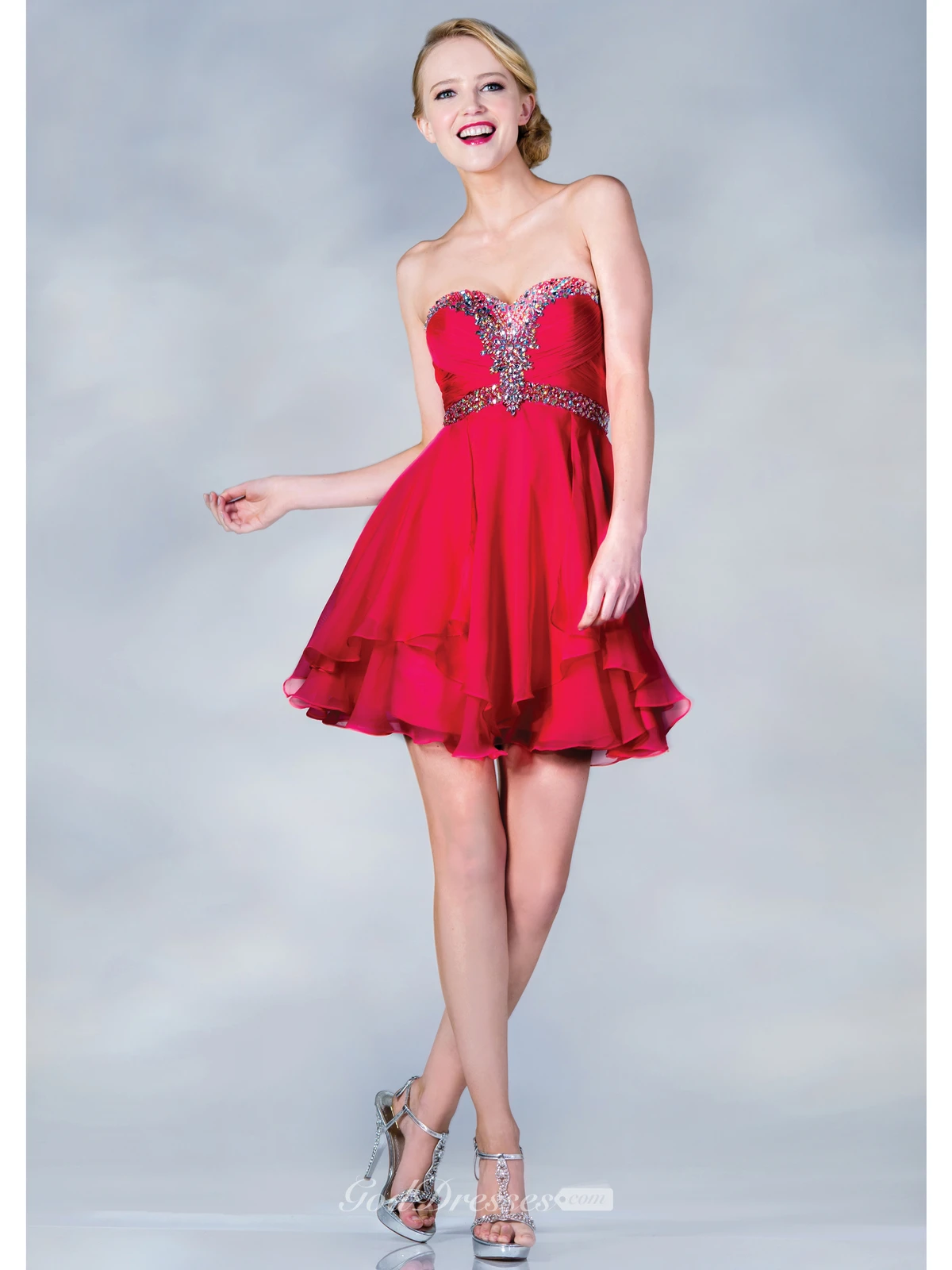 A-Line Short Sweetheart Sleeveless Chiffon Dress With Beading And Draping