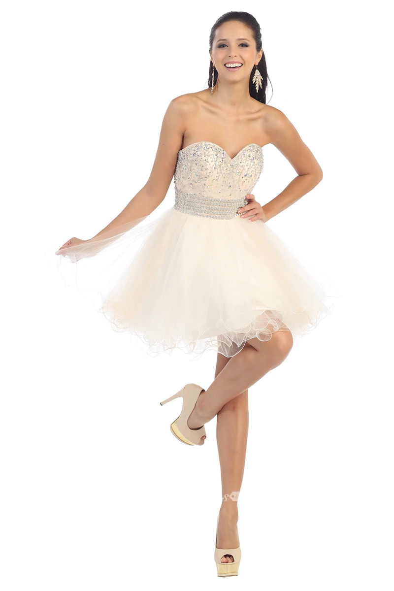 A-Line Short Sweetheart Sleeveless Tulle Backless Dress With Beading And Ruffles