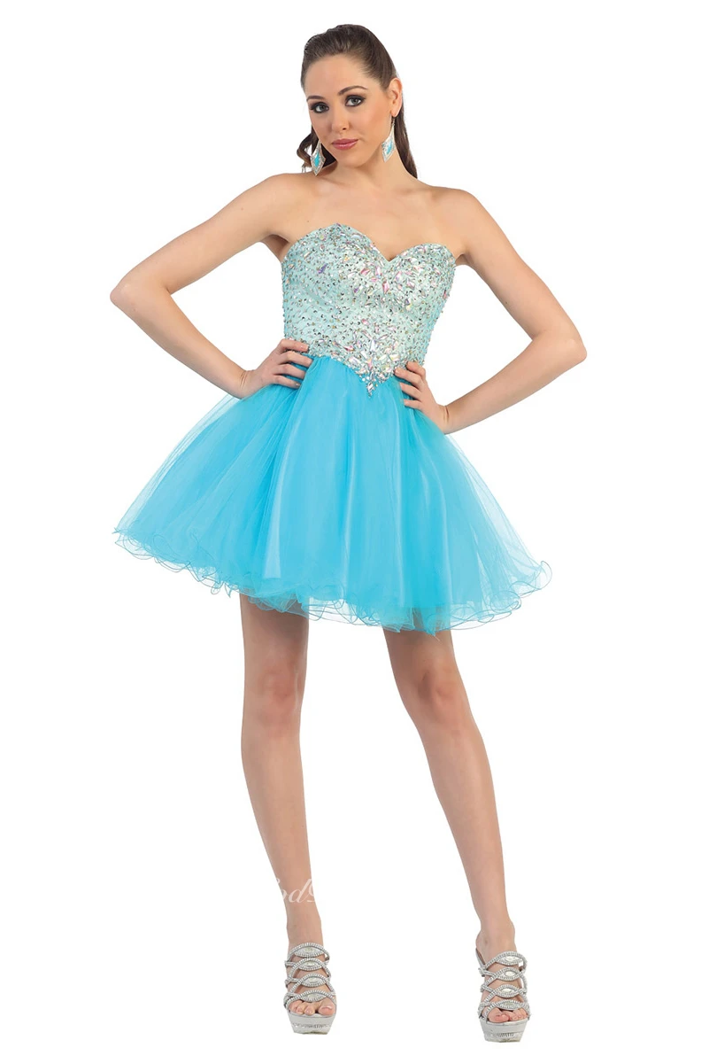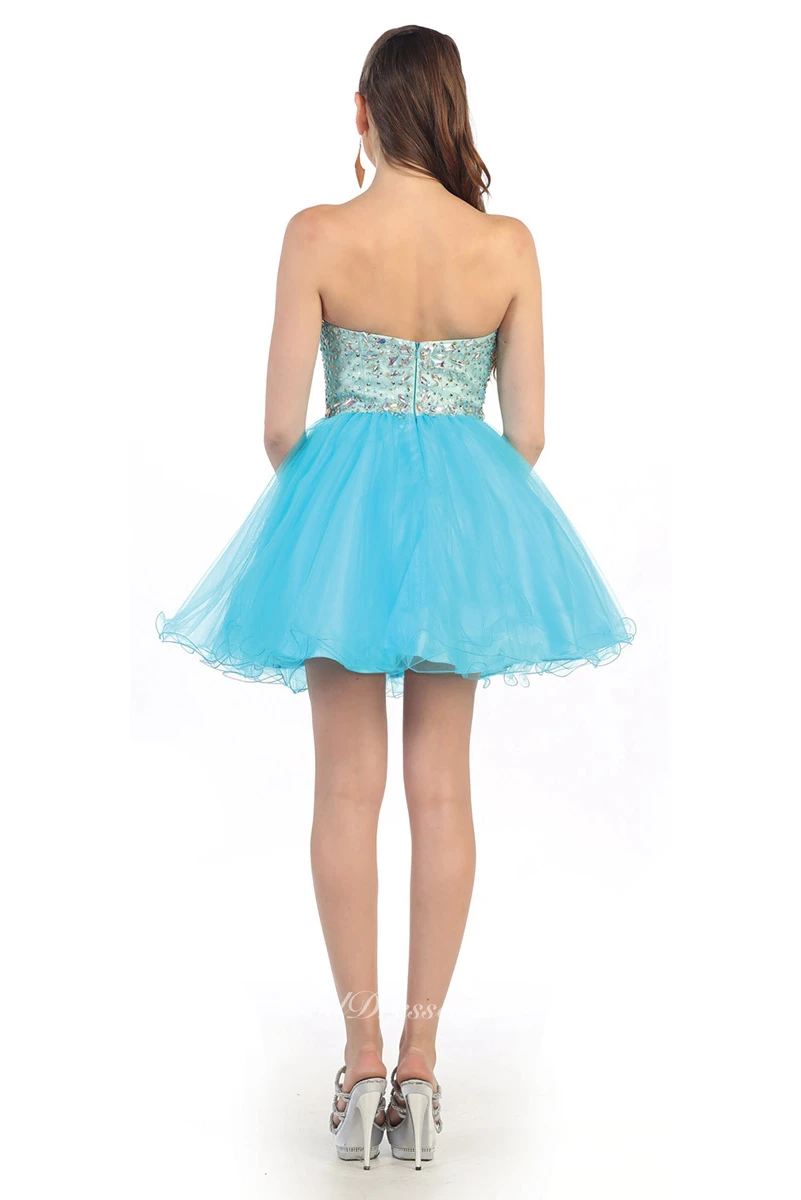 A-Line Short Sweetheart Sleeveless Tulle Backless Dress With Beading