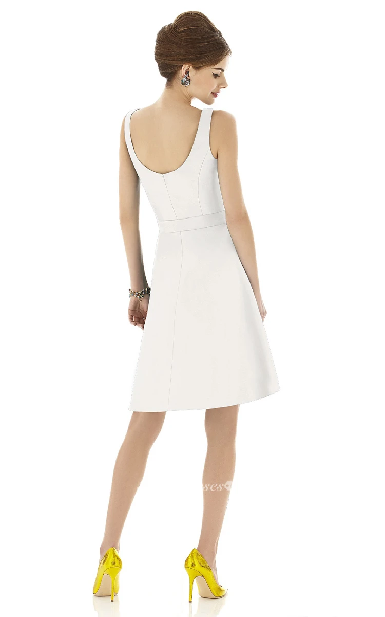 A-Line Short V-Neck Chic Sleeveless Dress With Bow Sash