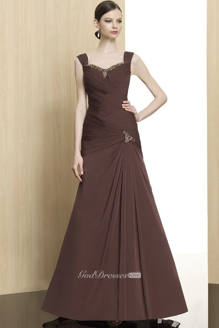 A-Line Sleeveless Beaded Floor-Length Chiffon Formal Dress With Zipper Back And Draping
